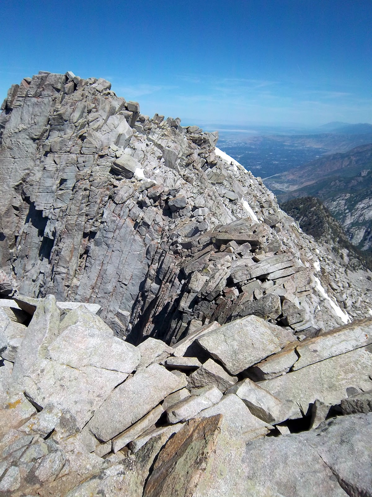 The rest of the way to the true peak is requires a steady heart and hand as you must climb over some car size boulders over a narrow ridge with 500 ft cliffs to one side. Uncle Bob was a good guide and found a not-as-treacherous path to the top. You must first descend a little and then back up the peak. I would highly suggest not going at this alone.